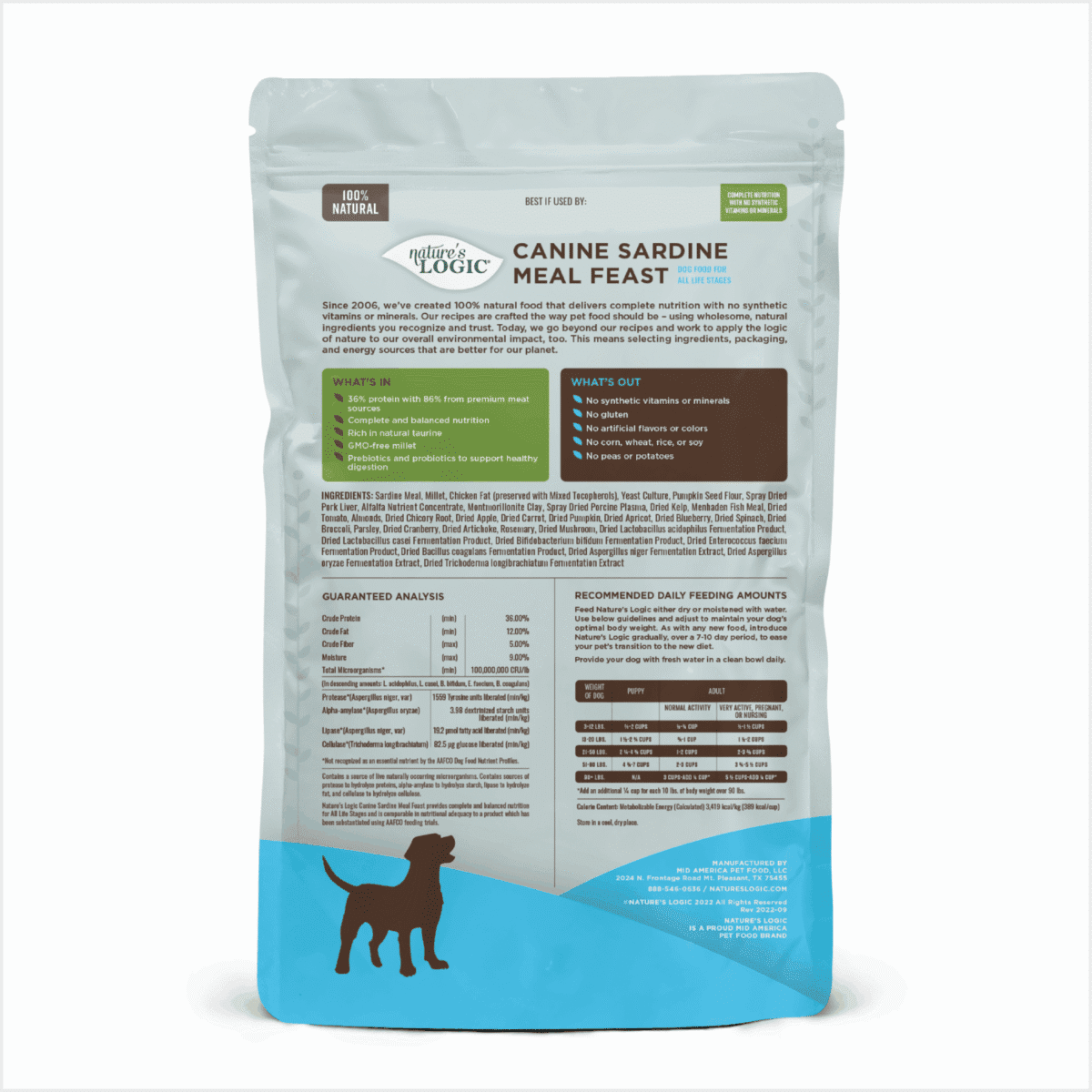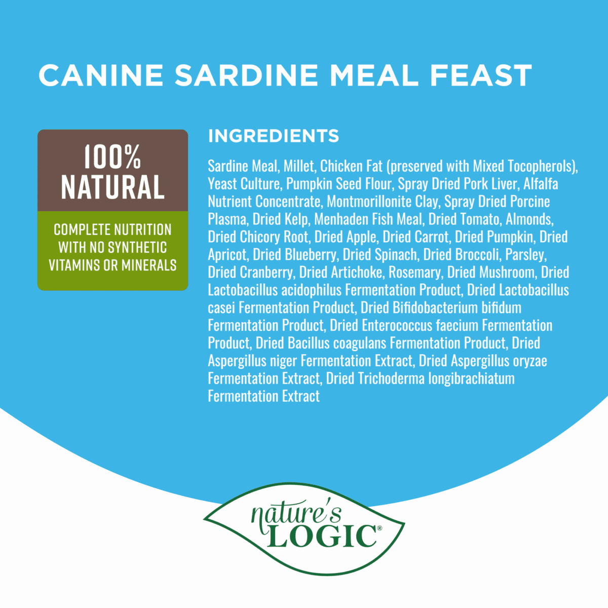 Nature’s Logic Canine Sardine Meal Feast provides complete and balanced nutrition for All Life Stages and is comparable in nutritional adequacy to a product which has been substantiated using AAFCO feeding trials.